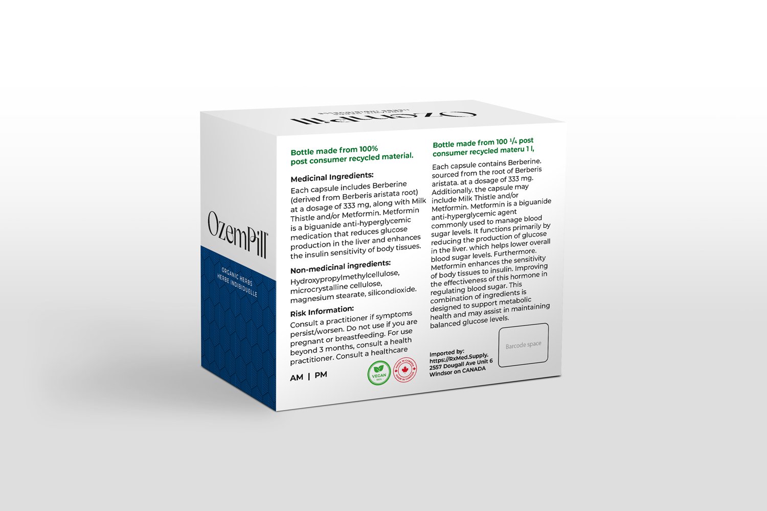 Ozempill™ is a professional-grade dietary supplement formulated to support healthy weight management through multiple metabolic pathways. Each capsule contains a targeted dose of Berberine HCl, a bioactive compound derived from various plants traditionally used in Ayurvedic and Chinese medicine. Berberine has been clinically shown to support glucose metabolism, insulin sensitivity, and lipid profile balance.
